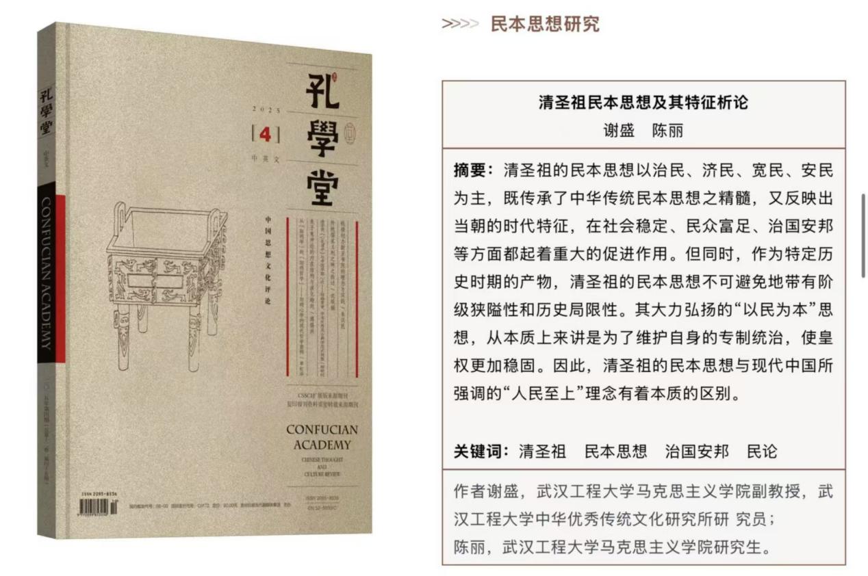 本网讯(通讯员 张晓 宋嘉怡)克日 , ,,,,我院谢盛副教授、硕士研究生陈丽在《孔学堂》(CSSCI扩展版期刊)揭晓论文《清圣祖民本头脑及其特征析论》。。。。。 。