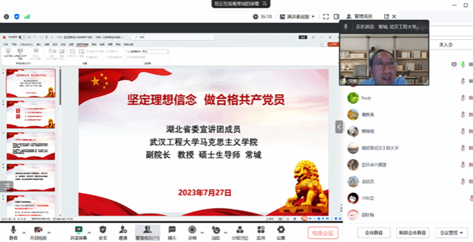 (通讯员 李齐)7月27日,,,,,,,凭证学校党委关于学习贯彻习近平新时代中国特色社会主义头脑主题教育的安排,,,,,,,学院党委关于学习贯彻习近平新时代中国特色社会主义头脑主题教育的安排,,,,,,,湖北省委宣讲团成员、学院院副院长、硕士生导师常城教授通过腾讯聚会为“原理”党支部的全体党员西席教学专题党课。。。。。。。。