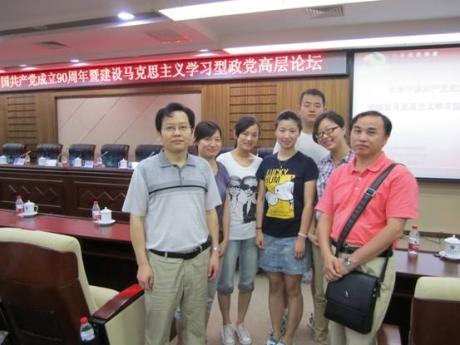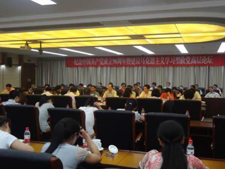 6月11日,, ,,,,,,“庆祝中国共产党建设90周年暨建设马克思主义学习型政党高层论坛”天下性学术聚会在华中师范大学逸夫国际聚会中心举行。。。。。。。院长舒先林教授应邀向导西席和研究生代表加入了聚会。。。。。。。此次论坛由中共湖北省委宣传部、湖北省社科联和华中师范大学团结举行。。。。。。。