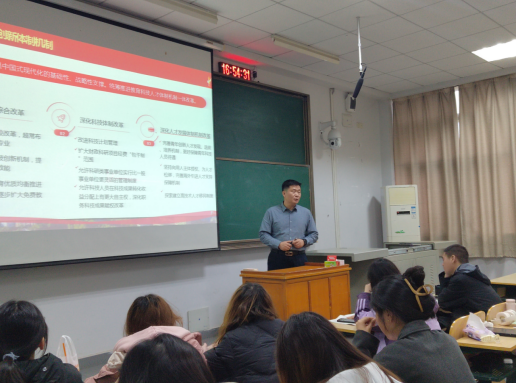 (通讯员 胡秋梅)为贯彻落实《教育部关于增强新时代高校“形势与政策”课建设的若干意见》精神,,,,,推动党政向导干部上讲台讲“形势与政策”课,,,,,11月22日下昼,,,,,副校长朱青林走进思政课堂,,,,,为2023级外语学院本科生教学了一节精彩生动的形势政策课。。。。。。
