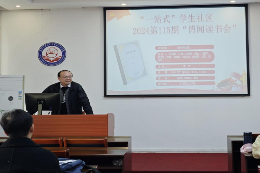 (通讯员:张悦悦) 11月26日下昼,,,,,,,,我院第115期“博闻念书会”在公海555000jc线路检测中心官网一站式学生社区中心(求是楼401课堂)顺遂召开。。。。。本次念书会的主题为社会左券与民主政治,,,,,,,,同砚们围绕着卢梭的著名政治哲学著作《社会左券论》睁开讨论。。。。。本次念书会由李齐先生主持。。。。。加入此次念书会的12位研究生主讲人划分为葛明悦、江冀、江奕桥、戴立、张静文、宋清华、李娟、刘哲轩、陈思思、金敏星、刘欣、张悦悦。。。。。院学术部“博闻念书会”运动小组组织了此次念书会。。。。。