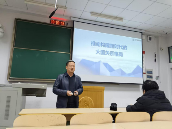 (通讯员 平英志)为贯彻落实《教育部关于增强新时代高校“形势与政策”课建设的若干意见》精神,,,, ,推动党政向导干部上讲台讲“形势与政策”课,,,, ,12月19日晚上,,,, ,校党委常委、副校长、统战部部长吴云韬教授走进课堂,,,, ,围绕新时代大国关系为2024级化学工程与工艺专业本科生作了题为《推动构建新时代的大国关系名堂》的专题授课。。。。。 。。