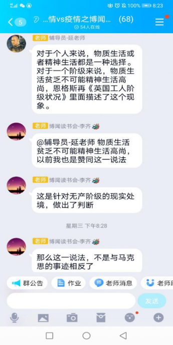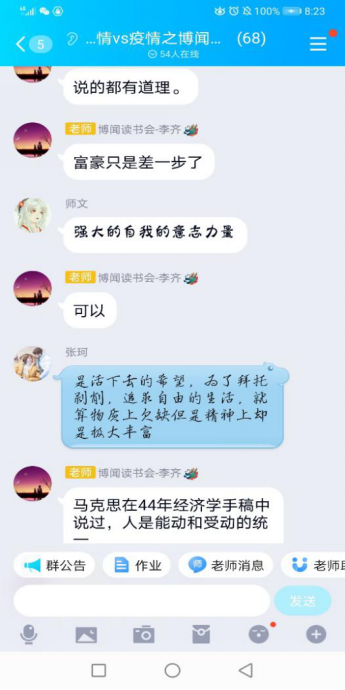 在这个特殊的日子里, ,,,, ,同砚们不但看到了抗疫胜利的曙光, ,,,, ,也切实体会到生命的意义。。。。。。。马院学子一起讨论了人生是选择题照旧证实题、生长的意义、哲学是不是宗教的延续、怎样熟悉自身的能量等问题。。。。。。。通过讨论, ,,,, ,各人越发深刻地体会到马克思主义无限的精神情力, ,,,, ,越发坚定了人生的理想与偏向。。。。。。。